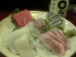 銀杏の素揚げ、まぐろ・たい・いか・さよりの造り、